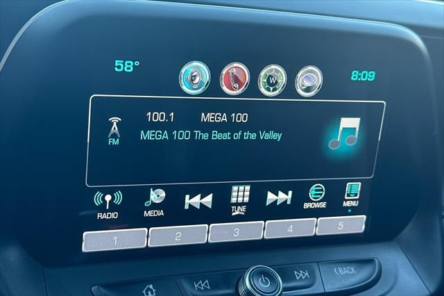 - Audio system, Chevrolet MyLink Radio with 8" diagonal color touch-screen, AM/FM stereo with seek-and-scan and digital clock includes Bluetooth® streaming audio for music and select phones; voice-activated technology for radio and phone; featuring Android Auto and Apple CarPlay capability for compatible phone and Shop with the ability to browse, select and install apps to your vehicle. Apps include Pandora, iHeartRadio, The Weather Channel and more
