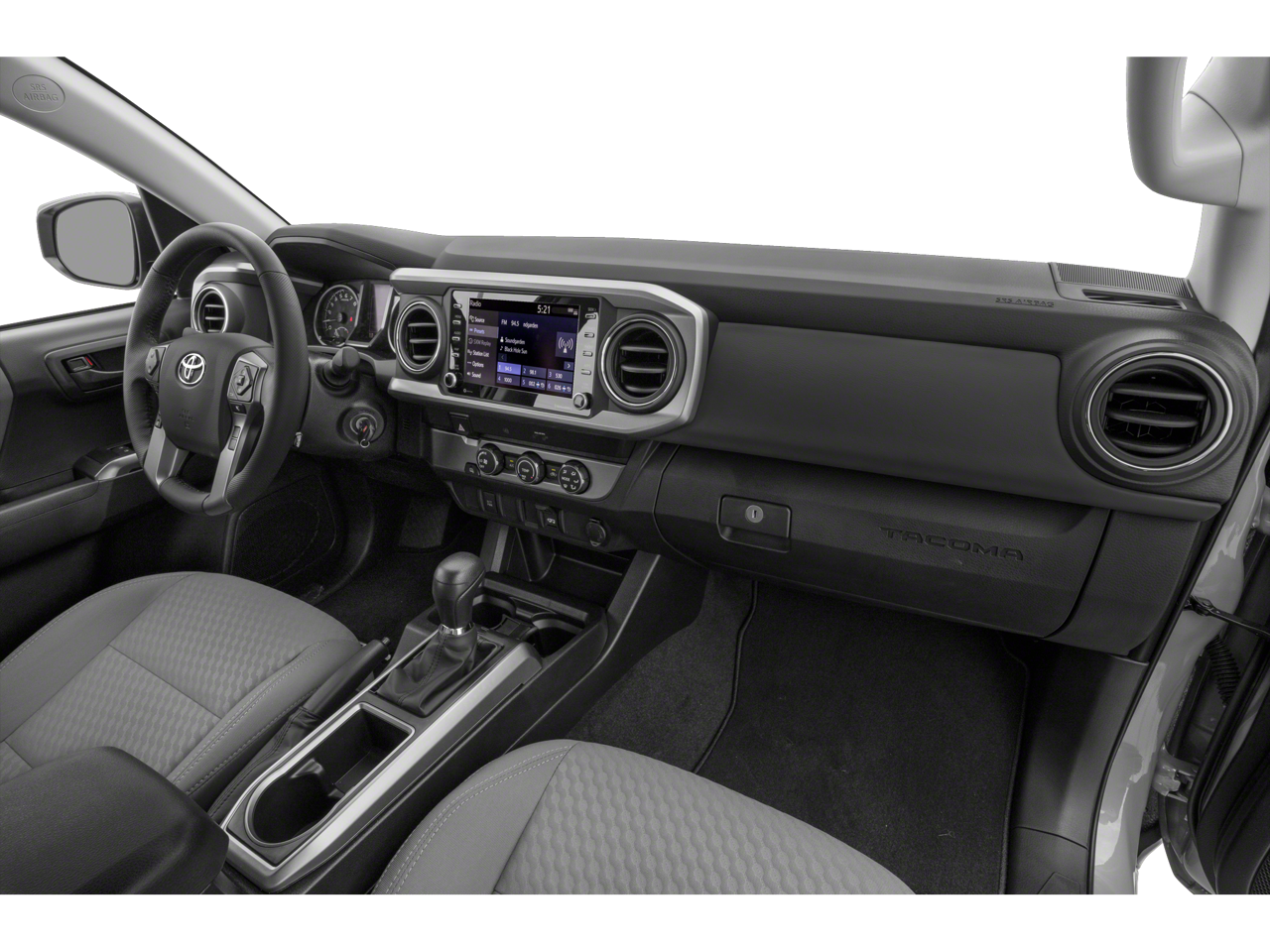 This 2022 Magnetic Gray Metallic Toyota Tacoma SR5 RWD is well equipped and includes these features and benefits: 6 Speakers, ABS brakes, Air Conditioning, Alloy wheels, AM/FM radio: SiriusXM, Anti-whiplash front head restraints, Apple CarPlay/Android Auto, Auto High-beam Headlights, Auto-dimming Rear-View mirror, Automatic temperature control, Axle Ratio: 3.91, Brake assist, Bumpers: body-color, Color-Keyed Rear Bumper, Driver door bin, Dual front impact airbags, Dual front side impact airbags, Electronic Stability Control, Emergency communication system: Safety Connect with 1-year trial, Exterior Parking Camera Rear, Fabric Seat Trim (FC), Front anti-roll bar, Front Bucket Seats, Front Center Armrest, Front dual zone A/C, Front fog lights, Front reading lights, Front Seats, Front wheel independent suspension, Illuminated entry, Knee airbag, Low tire pressure warning, Occupant sensing airbag, Outside temperature display, Overhead airbag, Overhead console, Panic alarm, Passenger door bin, Power door mirrors, Power driver seat, Power steering, Power windows, Radio: AM/FM Radio, Rear step bumper, Remote keyless entry, Speed control, Speed-sensing steering, Split folding rear seat, Steering wheel mounted audio controls, Tachometer, Telescoping steering wheel, Tilt steering wheel, Traction control, Trip computer, Variably intermittent wipers, and Wheels: 16 x 7J Silver Alloy.