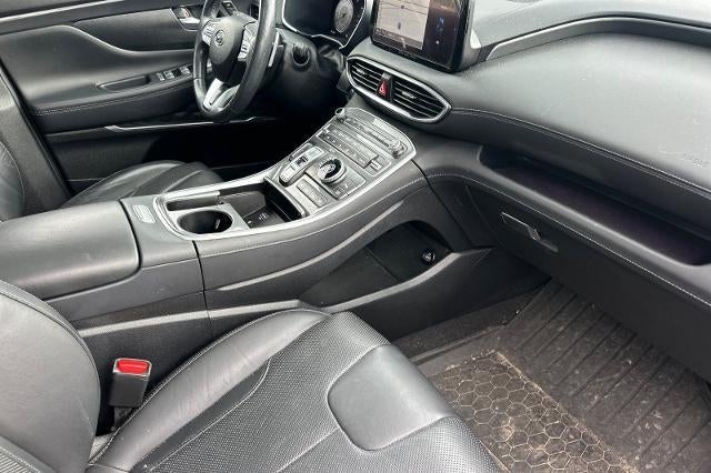 Backup Camera, Bluetooth®, Alloy Wheels, Audio Package, Climate Package, Comfort Package, Heat Package, Leather Seats, NON SMOKER, One Owner Carfax, Power Mirror Package, Power Package, Security Package, Sound Package, Santa Fe Calligraphy, 4D Sport Utility, 2.5L I4, Shiftronic, FWD, Portofino Gray, Black w/Leather Seat Trim, 12 Speakers, 4-Wheel Disc Brakes, ABS brakes, Air Conditioning, All Season Fitted Liners, Alloy wheels, AM/FM radio: SiriusXM, Apple CarPlay & Android Auto, Auto High-beam Headlights, Auto-dimming Rear-View mirror, Automatic temperature control, Axle Ratio: 3.316, Brake assist, Bumper Applique, Bumpers: body-color, Cargo Net, Cargo Tray, Delay-off headlights, Driver door bin, Driver vanity mirror, Dual front impact airbags, Dual front side impact airbags, Electronic Stability Control, Emergency communication system, Exterior Parking Camera Rear, First Aid Kit, Four wheel independent suspension, Front anti-roll bar, Front Bucket Seats, Front Center Armrest, Front dual zone A/C, Front reading lights, Fully automatic headlights, Garage door transmitter: HomeLink, harman/kardon® Speakers, Heads-Up Display, Heated & Ventilated Front Bucket Seats, Heated door mirrors, Heated front seats, Heated rear seats, Heated steering wheel, Illuminated entry, Leather steering wheel, Low tire pressure warning, Memory seat, Mudguards, Navigation System, Occupant sensing airbag, Option Group 01, Outside temperature display, Overhead airbag, Overhead console, Panic alarm, Passenger door bin, Passenger vanity mirror, Power door mirrors, Power driver seat, Power Liftgate, Power moonroof, Power passenger seat, Power steering, Power windows, Quilted Premium Nappa Leather Seat Trim, Radio: AM/FM Harman Kardon Display Audio, Rain sensing wipers, Rear anti-roll bar, Rear seat center armrest, Rear window defroster, Rear window wiper, Remote keyless entry, Security system, Speed control, Speed-sensing steering, Split folding rear seat, Spoiler, Steering wheel mounted audio controls, Tachometer, Telescoping steering wheel, Tilt steering wheel, Traction control, Trip computer, Turn signal indicator mirrors, Variably intermittent wipers, Ventilated front seats. CARFAX One-Owner. Portofino Gray 2023 Hyundai Santa Fe Calligraphy FWD Shiftronic 2.5L I4