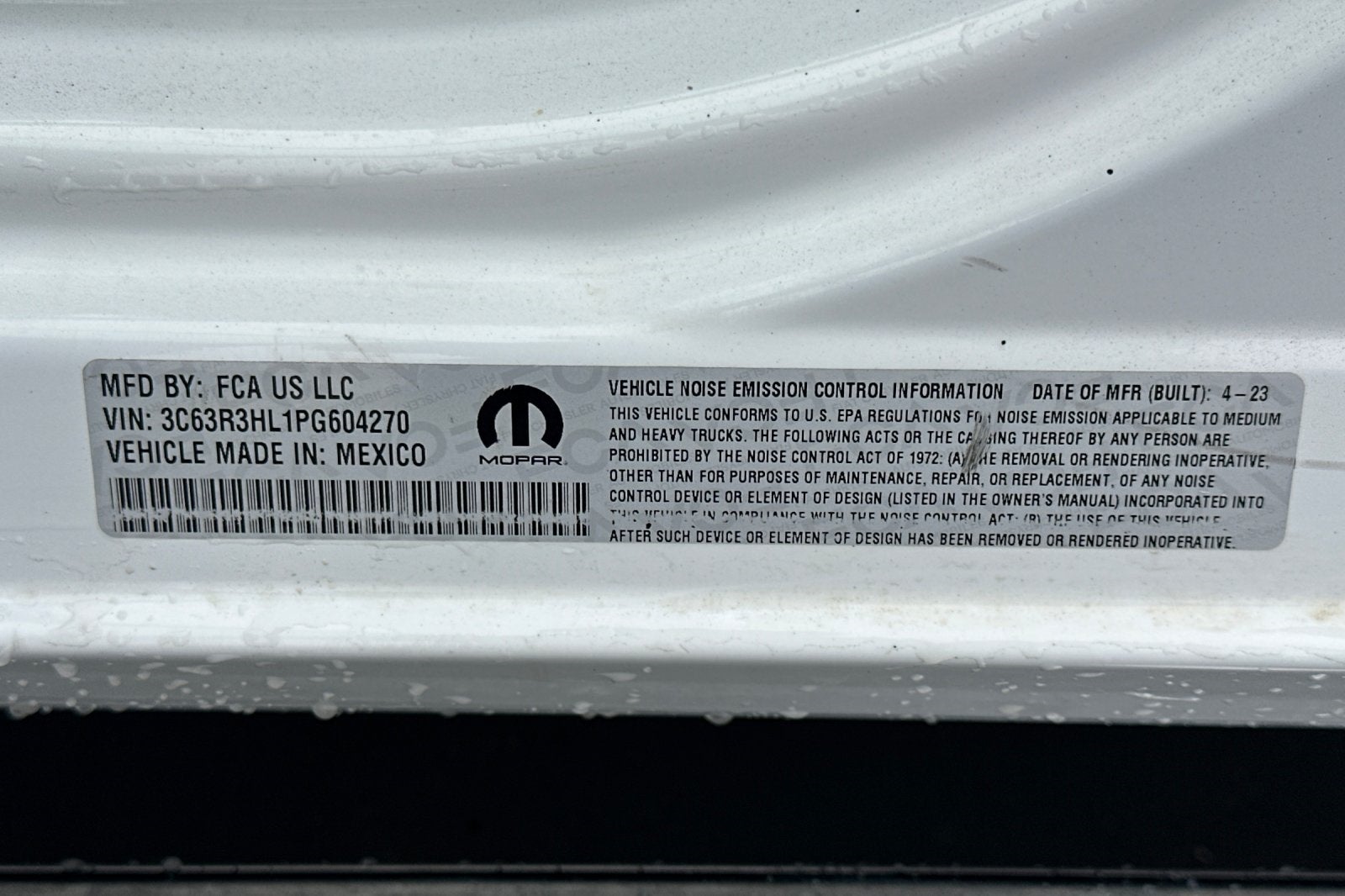 PREVIOUS DAILY RENTAL, PRICES INCLUDE MANUFACTURE REBATES, CHECK WITH DEALER. Backup Camera, Bluetooth®, Alloy Wheels, Audio Package, Climate Package, Comfort Package, Heat Package, Light Package, NON SMOKER, Power Mirror Package, Power Package, Security Package, Sound Package, 3500 Big Horn, 4D Crew Cab, Cummins 6.7L I6 Turbodiesel, 6-Speed Automatic, 4WD, Bright White Clearcoat, Diesel Gray/Black Cloth, 2 Way Rear Headrest Seat, 2nd Row In Floor Storage Bins, 3.73 Axle Ratio, 4 Way Front Headrests, 4-Wheel Disc Brakes, 40/20/40 Split Bench Seat, 4G LTE Wi-Fi Hot Spot, 5th Wheel/Gooseneck Towing Prep Group, 6 Speakers, 8.4 Touchscreen Display, ABS brakes, Active Noise Control System, Air Conditioning, Apple CarPlay, Auto Power-Folding Mirrors, Auto-dimming Rear-View mirror, Black Exterior Mirrors, Bluetooth® Handsfree Phone & Audio, Brake assist, Bumpers: chrome, Chrome Flat Cab-Length Side Steps, Cloth 40/20/40 Bench Seat, Compass, Connectivity - US/Canada, Delay-off headlights, Driver door bin, Dual front impact airbags, Dual front side impact airbags, Dual Glove Boxes, Electronic Stability Control, Electronically Controlled Throttle, Emergency communication system: SiriusXM Guardian, Exterior Mirrors Courtesy Lamps, Exterior Mirrors w/Heating Element, Exterior Mirrors w/Supplemental Signals, Foam Bottle Insert (Door Trim Panel), Footwell Courtesy Lamp, For Details Visit DriveUconnect.com, For More Info, Call 800-643-2112, Forward & Reverse Utility Lights, Front anti-roll bar, Front Armrest w/Cupholders, Front Center Armrest w/Storage, Front Center Seat Cushion Storage, Front Fog Lamps, Front License Plate Bracket, Front reading lights, Front Seat Back Map Pockets, Fully automatic headlights, Global Telematics Box Module (TBM), Glove Box Lamp, Google Android Auto, GPS Antenna Input, Illuminated entry, Integrated Center Stack Radio, Integrated Voice Command w/Bluetooth®, Leather Wrapped Steering Wheel, Level 1 Equipment Group, Locking Lower Glove Box, Low tire pressure warning, Manual Adjust 4-Way Driver Seat, Manual Adjust 4-Way Front Passenger Seat, Manufacturer's Statement of Origin, Mirror Running Lights, MOPAR Spray In Bedliner, Occupant sensing airbag, Outside temperature display, Overhead airbag, Overhead console, Panic alarm, ParkView Rear Back-Up Camera, Passenger door bin, Passenger vanity mirror, Power 2-Way Driver Lumbar Adjust, Power Adjust 8-Way Driver Seat, Power Adjust Mirrors, Power door mirrors, Power Heated Fold Telescopic Mirrors, Power steering, Power Telescoping Mirrors, Power windows, Power-Adjustable Convex Aux Mirrors, Premium Cloth 40/20/40 Bench Seat, Quick Order Package 2HZ Big Horn, Radio data system, Radio: Uconnect 3 w/5 Display, Radio: Uconnect 5 w/8.4 Display, Rear 60/40 Folding Seat, Rear Dome w/On/Off Switch Lamp, Rear Folding Seat, Rear seat center armrest, Rear step bumper, Remote keyless entry, Selectable Tire Fill Alert, SiriusXM Radio Service, SiriusXM Satellite Radio, Speed control, Steering Wheel Mounted Audio Controls, Storage Tray, Tachometer, Tilt steering wheel, Tip Start, Traction control, Trip computer, Turn signal indicator mirrors, Variably intermittent wipers, Voltmeter. CARFAX One-Owner. Bright White Clearcoat 2023 Ram 3500 Big Horn 4WD 6-Speed Automatic Cummins 6.7L I6 Turbodiesel