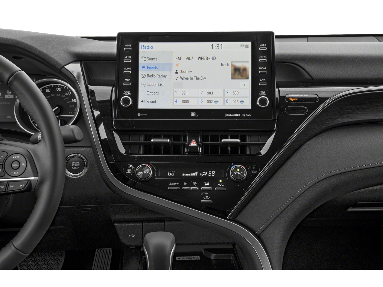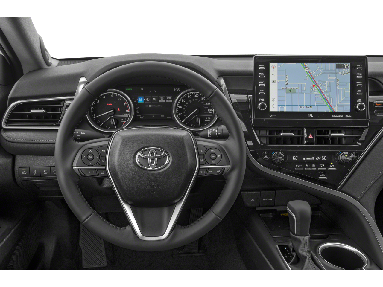 This 2023 Midnight Black Metallic Toyota Camry XLE FWD is well equipped and includes these features and benefits: Black Leather, 4-Wheel Disc Brakes, 6 Speakers, 8.0J x 18 Alloy Wheels, ABS brakes, Air Conditioning, Alloy wheels, AM/FM radio: SiriusXM, Apple CarPlay/Android Auto, Auto High-beam Headlights, Auto-dimming Rear-View mirror, Automatic temperature control, Brake assist, Bumpers: body-color, Delay-off headlights, Driver door bin, Driver vanity mirror, Dual front impact airbags, Dual front side impact airbags, Electronic Stability Control, Emergency communication system: Safety Connect (1-year trial), Exterior Parking Camera Rear, Four wheel independent suspension, Front anti-roll bar, Front Bucket Seats, Front Center Armrest, Front dual zone A/C, Front reading lights, Fully automatic headlights, Garage door transmitter: HomeLink, Heated door mirrors, Heated front seats, Illuminated entry, Knee airbag, Leather steering wheel, Low tire pressure warning, Multi-Stage Heated Front Bucket Seats, Occupant sensing airbag, Outside temperature display, Overhead airbag, Overhead console, Panic alarm, Passenger door bin, Passenger vanity mirror, Perforated Leather Seat Trim, Power door mirrors, Power driver seat, Power passenger seat, Power steering, Power windows, Radio data system, Radio: Audio Plus, Rear anti-roll bar, Rear reading lights, Rear seat center armrest, Rear side impact airbag, Rear window defroster, Remote keyless entry, Security system, Speed control, Speed-sensing steering, Split folding rear seat, Steering wheel mounted audio controls, Tachometer, Telescoping steering wheel, Tilt steering wheel, Traction control, Trip computer, Turn signal indicator mirrors, and Variably intermittent wipers. Black Leather.
