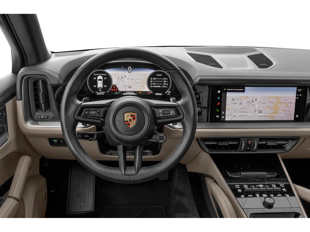 This 2024 White Porsche Cayenne AWD is well equipped and includes these features and benefits: Black Leather, 10 Speakers, 4-Wheel Disc Brakes, 8-Way Power Seats, ABS brakes, Adaptive suspension, Air Conditioning, Alloy wheels, AM/FM radio: SiriusXM w/360L, Audio memory, Auto High-beam Headlights, Auto-dimming door mirrors, Auto-dimming Rear-View mirror, Automatic temperature control, Axle Ratio: 3.48, Brake assist, Bumpers: body-color, Compass, Delay-off headlights, Driver door bin, Driver vanity mirror, Dual front impact airbags, Dual front side impact airbags, Electronic Stability Control, Exterior Parking Camera Rear, Four wheel independent suspension, Front anti-roll bar, Front Bucket Seats, Front Center Armrest, Front dual zone A/C, Front reading lights, Fully automatic headlights, Garage door transmitter: HomeLink, Heated door mirrors, Heated front seats, HVAC memory, Illuminated entry, Knee airbag, Leather steering wheel, Low tire pressure warning, Memory seat, Navigation System, Occupant sensing airbag, Outside temperature display, Overhead airbag, Overhead console, Panic alarm, Partial Leather Seat Trim, Passenger door bin, Passenger vanity mirror, Porsche Communication Management, Power door mirrors, Power driver seat, Power Liftgate, Power passenger seat, Power steering, Power windows, Radio data system, Rain sensing wipers, Rear anti-roll bar, Rear fog lights, Rear reading lights, Rear seat center armrest, Rear side impact airbag, Rear window defroster, Rear window wiper, Remote keyless entry, Security system, Speed control, Speed-sensing steering, Split folding rear seat, Spoiler, Steering wheel mounted audio controls, Tachometer, Telescoping steering wheel, Tilt steering wheel, Traction control, Trip computer, Turn signal indicator mirrors, Variably intermittent wipers, Voltmeter, and Wheels: 20 Cayenne Design. Black Leather.