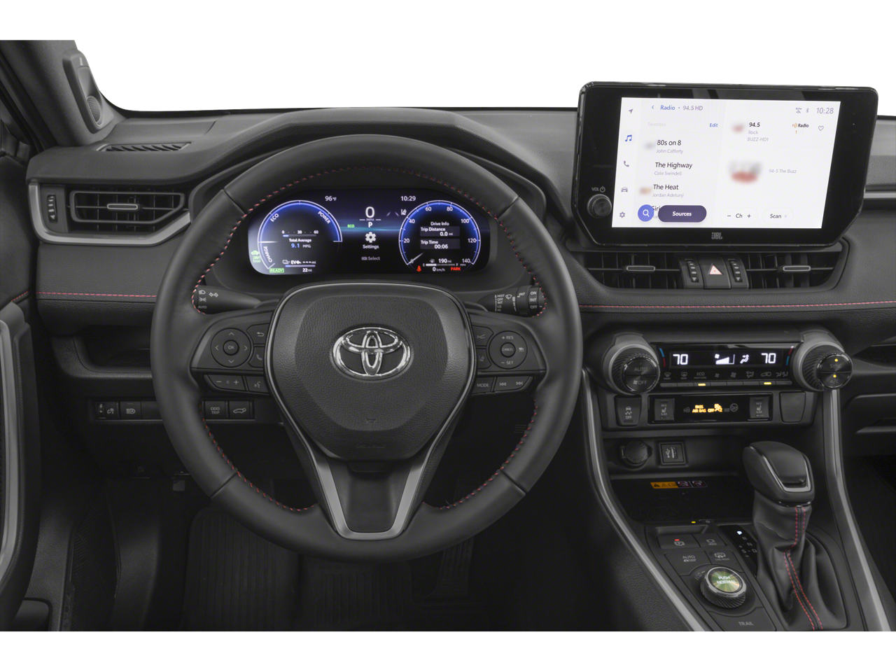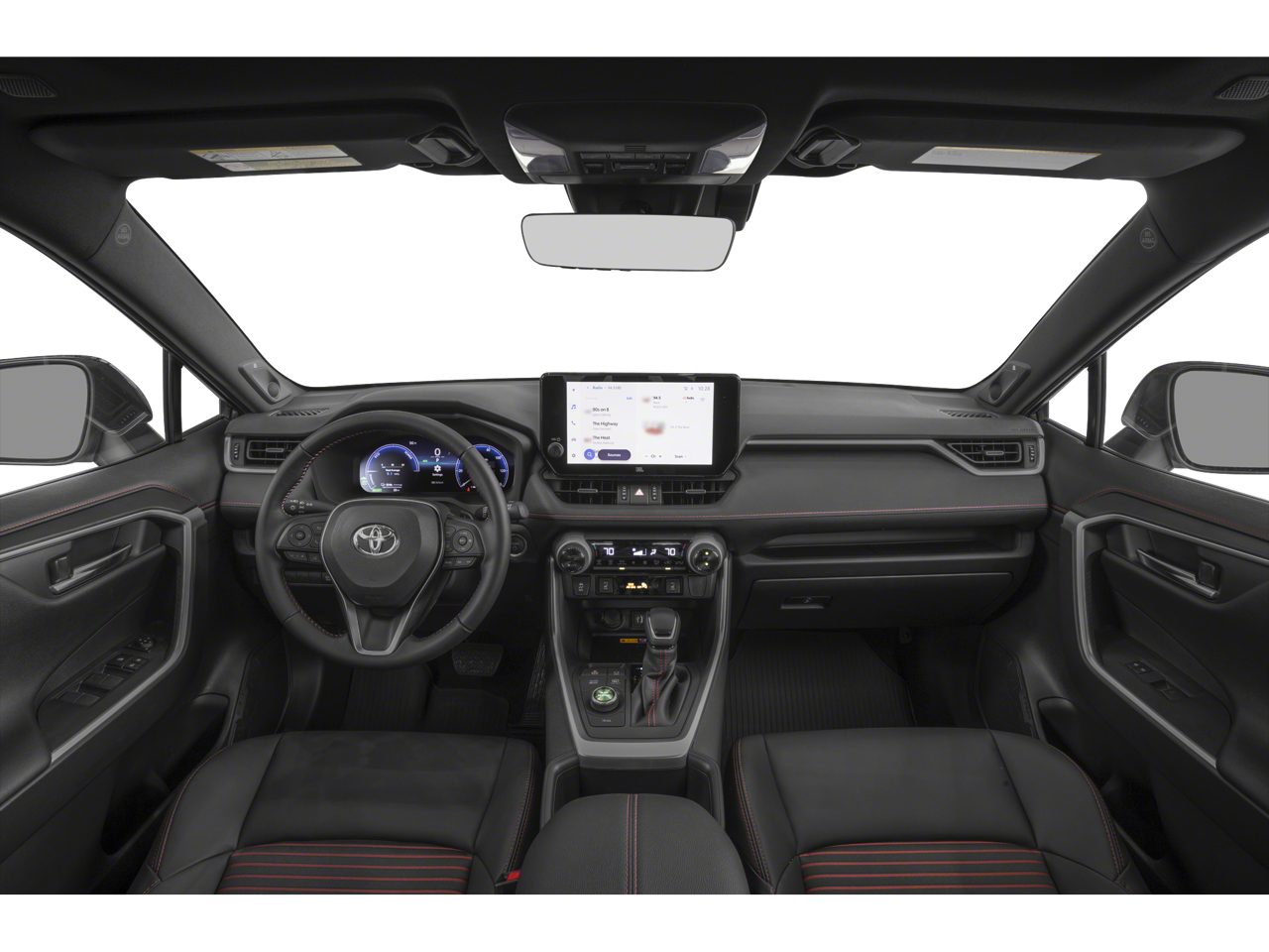 This 2024 Midnight Black Metallic Toyota RAV4 Prime XSE AWD is well equipped and includes these features and benefits: 11 Speakers, 19 Alloy Wheels, 4-Wheel Disc Brakes, ABS brakes, Air Conditioning, Alloy wheels, AM/FM radio: SiriusXM, Auto High-beam Headlights, Auto-dimming Rear-View mirror, Automatic temperature control, Axle Ratio: TBD, Brake assist, Bumpers: body-color, Delay-off headlights, Driver door bin, Driver vanity mirror, Dual front impact airbags, Dual front side impact airbags, Electronic Stability Control, Emergency communication system: Safety Connect (10-year trial), Exterior Parking Camera Rear, Four wheel independent suspension, Front anti-roll bar, Front Bucket Seats, Front Center Armrest, Front dual zone A/C, Front fog lights, Front reading lights, Fully automatic headlights, Garage door transmitter: HomeLink, Heated door mirrors, Heated Front Bucket Seats, Heated front seats, Illuminated entry, JBL Audio System, Knee airbag, Leather Shift Knob, Leather steering wheel, Low tire pressure warning, Mixed Media Seat Trim, Navigation system: Drive Connect Cloud Navigation (1-year trial subscription), Occupant sensing airbag, Outside temperature display, Overhead airbag, Overhead console, Panic alarm, Passenger door bin, Passenger vanity mirror, Power door mirrors, Power driver seat, Power Liftgate, Power moonroof, Power steering, Power windows, Radio data system, Rear anti-roll bar, Rear seat center armrest, Rear window defroster, Rear window wiper, Remote keyless entry, Security system, Speed control, Speed-sensing steering, Split folding rear seat, Spoiler, Steering wheel mounted audio controls, Telescoping steering wheel, Tilt steering wheel, Traction control, Trip computer, Turn signal indicator mirrors, and Variably intermittent wipers.