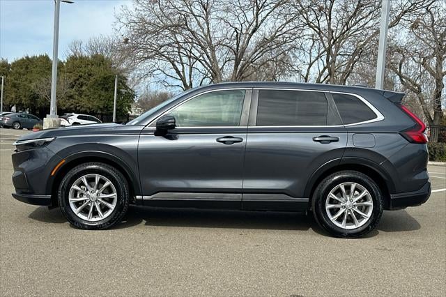 This 2025 Gray Honda CR-V EX-L AWD is well equipped and includes these features and benefits: CR-V EX-L, 4D Sport Utility, 1.5L I4 DOHC 16V, CVT, AWD, Gray, Gray w/Cloth Seat Trim, 4-Wheel Disc Brakes, 8 Speakers, ABS brakes, Adaptive Cruise Control: Adaptive Cruise Control (ACC) with Low-Speed Follow, Air Conditioning, Alloy wheels, AM/FM radio: SiriusXM, Auto High-beam Headlights, Auto-dimming Rear-View mirror, Automatic temperature control, Blind Spot Information (BSI) System warning, Brake assist, Bumpers: body-color, Compass, Delay-off headlights, Driver door bin, Driver vanity mirror, Dual front impact airbags, Dual front side impact airbags, Electronic Stability Control, Exterior Parking Camera Rear, Four wheel independent suspension, Front anti-roll bar, Front Bucket Seats, Front Center Armrest, Front dual zone A/C, Front reading lights, Fully automatic headlights, Heated door mirrors, Heated Front Bucket Seats, Heated front seats, Illuminated entry, Knee airbag, Leather Seat Trim, Leather Shift Knob, Leather steering wheel, Low tire pressure warning, Memory seat, Occupant sensing airbag, Outside temperature display, Overhead airbag, Overhead console, Panic alarm, Passenger door bin, Passenger vanity mirror, Power door mirrors, Power driver seat, Power Liftgate, Power moonroof, Power passenger seat, Power steering, Power windows, Radio data system, Radio: 320-Watt AM/FM/HD/SiriusXM Audio System, Rear anti-roll bar, Rear reading lights, Rear seat center armrest, Rear side impact airbag, Rear window defroster, Rear window wiper, Remote keyless entry, Security system, Speed control, Speed-sensing steering, Speed-Sensitive Wipers, Split folding rear seat, Spoiler, Steering wheel mounted audio controls, Tachometer, Telescoping steering wheel, Tilt steering wheel, Traction control, Trip computer, Turn signal indicator mirrors, Variably intermittent wipers, and Wheels: 18 Sparkle Silver Alloy Metallic. CR-V EX-L, 4D Sport Utility, 1.5L I4 DOHC 16V, CVT, AWD, Gray, Gray w/Cloth Seat Trim.