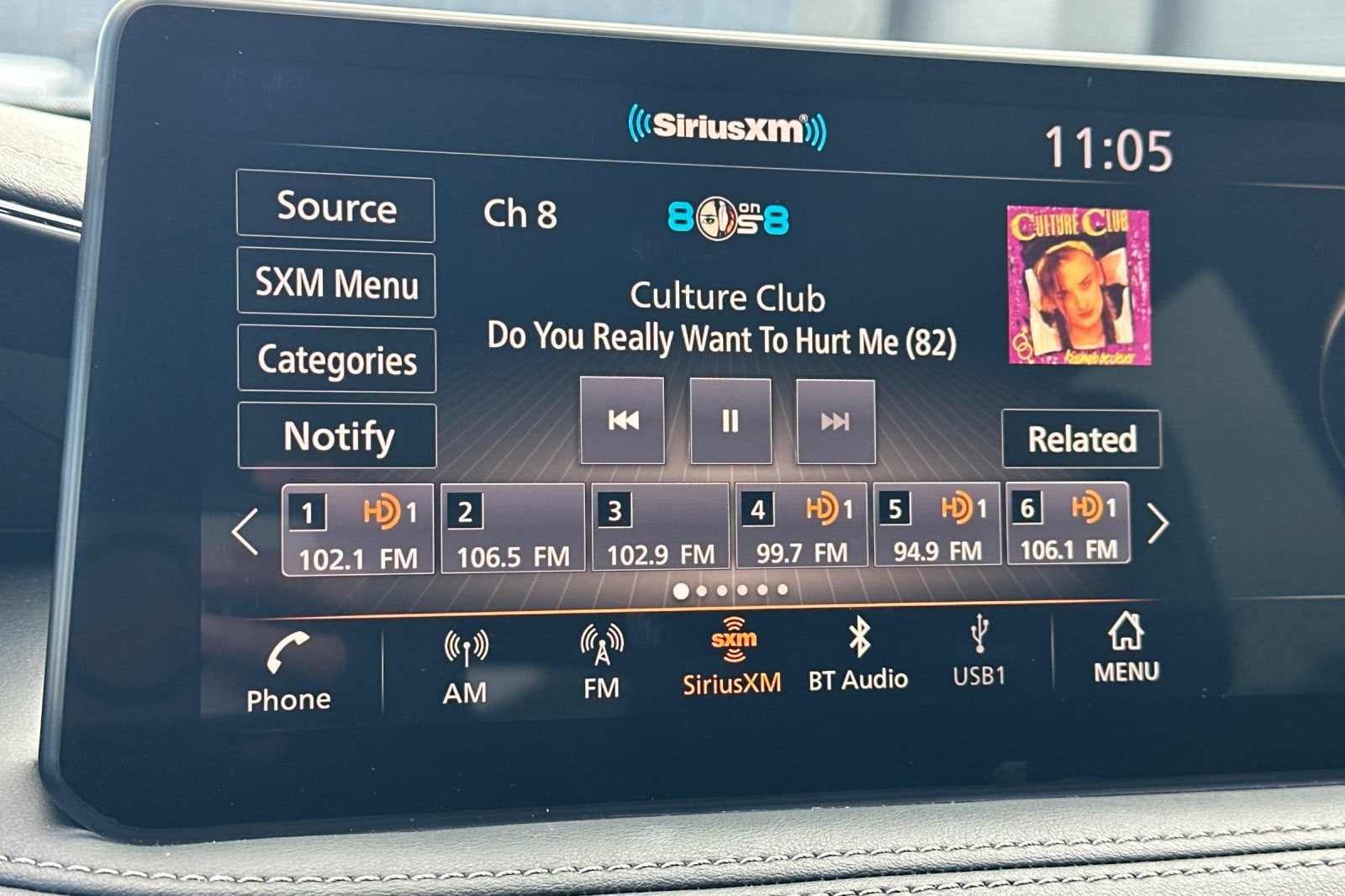 - Radio: AM/FM Audio System -inc: 9 speakers, INFINITI InTouch 12.3" interactive display, INFINITI InTouch w/wireless Apple CarPlay integration and Android Auto (includes Bluetooth®), HD Radio technology, SiriusXM radio, WiFi hotspot, INFINITI voice recognition w/Siri Eyes Free/Google Assistant, INFINITI InTouch services, Active Noise Cancellation (ANC), Bluetooth® hands-free phone/voice control switches, data capable type-A and type C USB connection ports and steering wheel audio controls